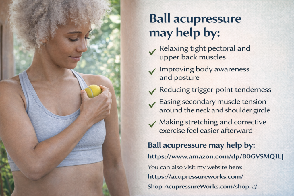 If we use ball acupressure for thoracic outlet-related discomfort, gentle and precise is the rule. This is not a deep-tissue contest.